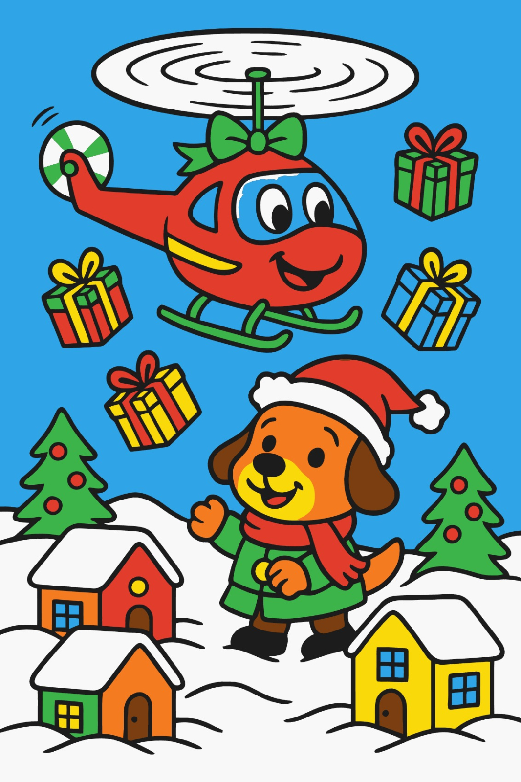 Plansa cu nisip colorat -Cu Căţelul și Elicopterul Moșului