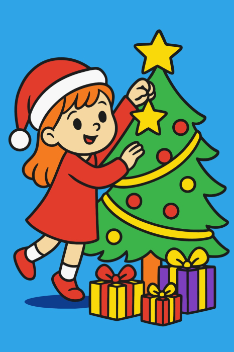 Plansa cu nisip colorat -Cu o Fetita Împodobind Bradul cu Bucurie