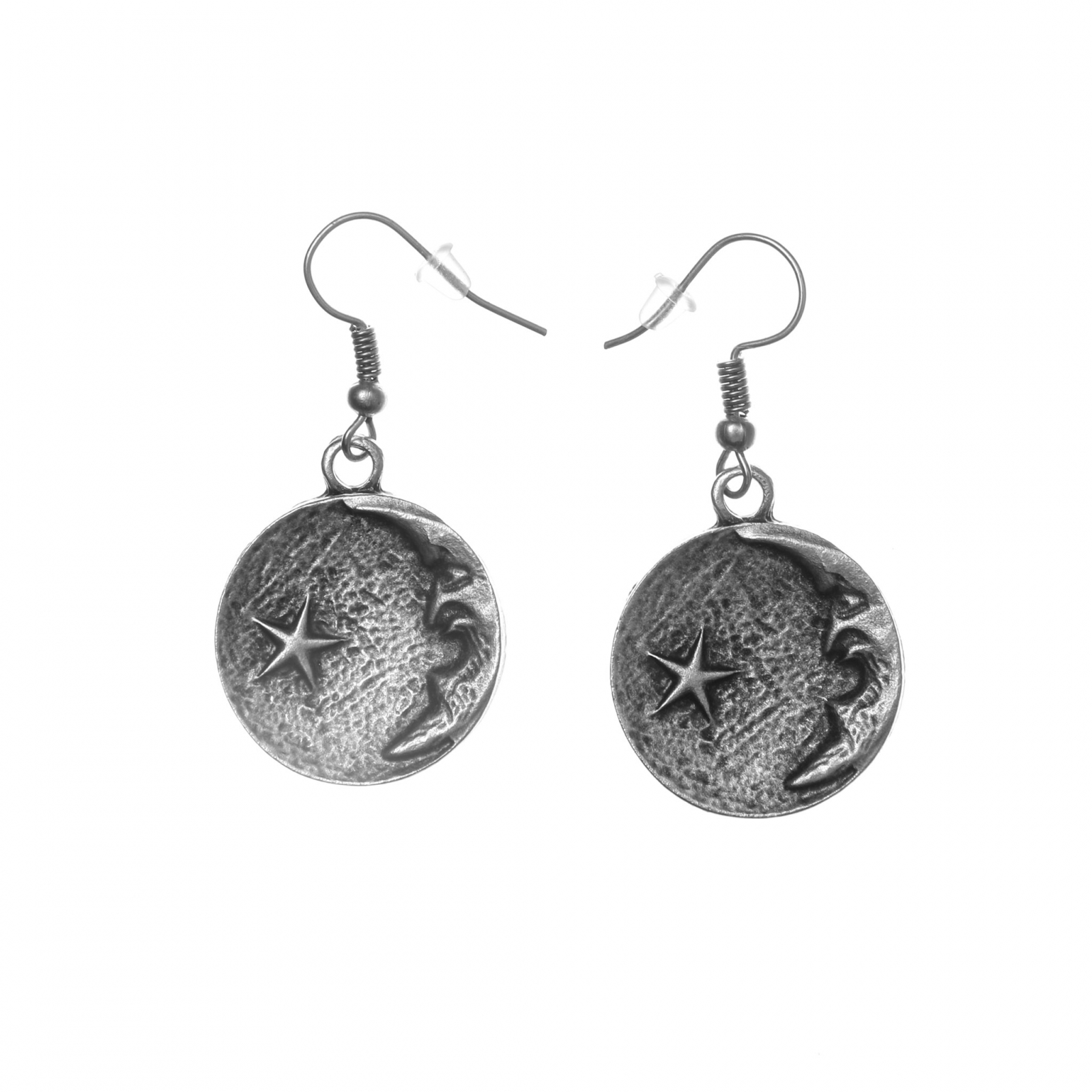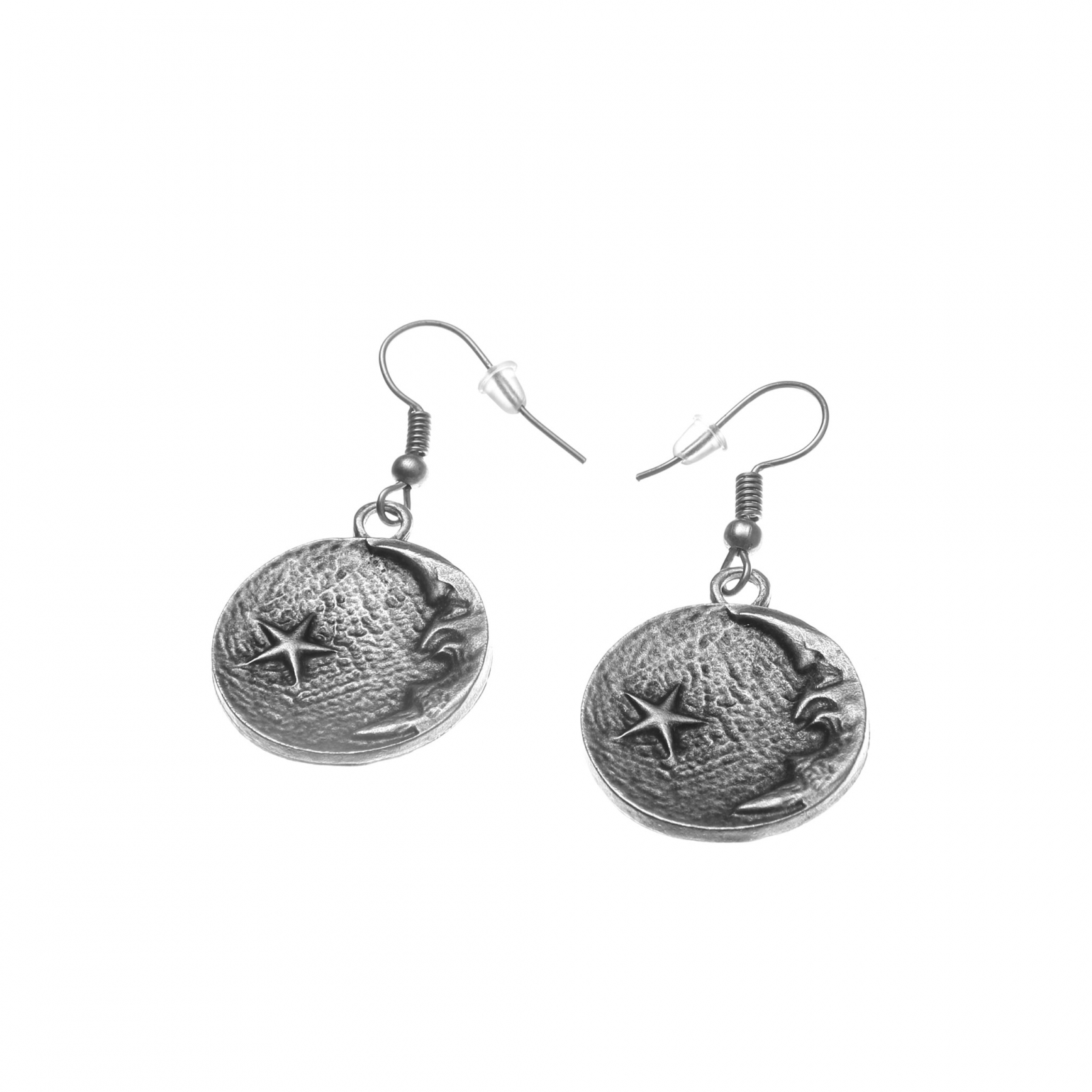 Cerceii din zamac model "Lună și Stele" sunt bijuterii fermecătoare, inspirate de frumusețea nopții și a cerului înstelat. Cu designul lor delicat, reprezentând contururile unei luni însoțite de stele strălucitoare, acești cercei adaugă un strop de magie și eleganță oricărei ținute.