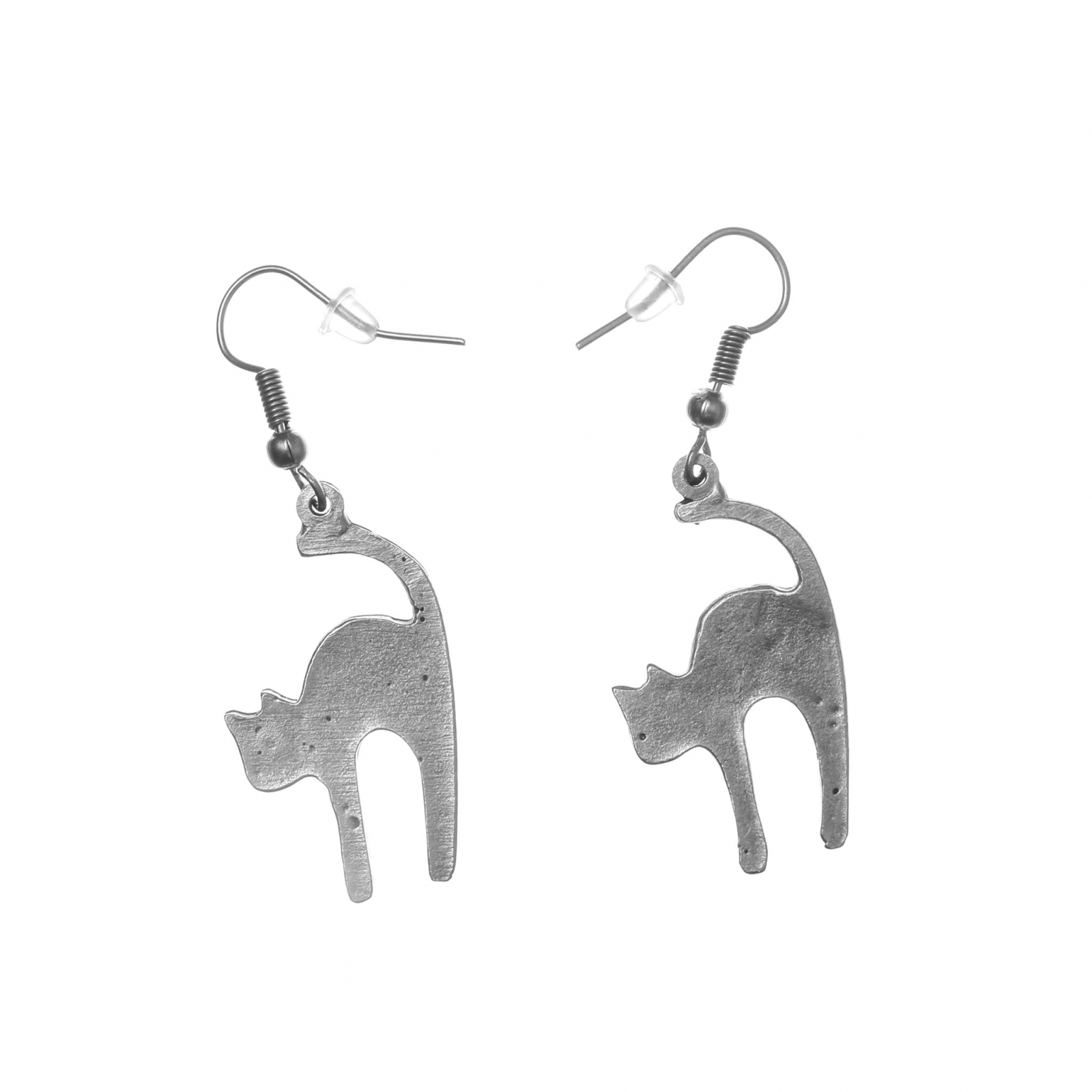 Cerceii din zamac în formă de pisică sunt bijuterii adorabile și jucause, inspirate de eleganța și grația felinelor. Cu un design fermecător, reprezentând contururile zvelte ale unei pisici, acești cercei adaugă un strop de farmec și căldură oricărei ținute.
