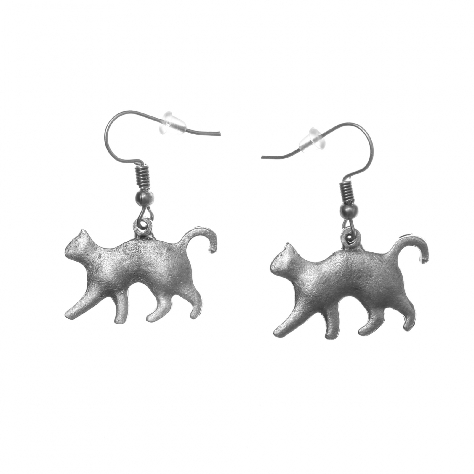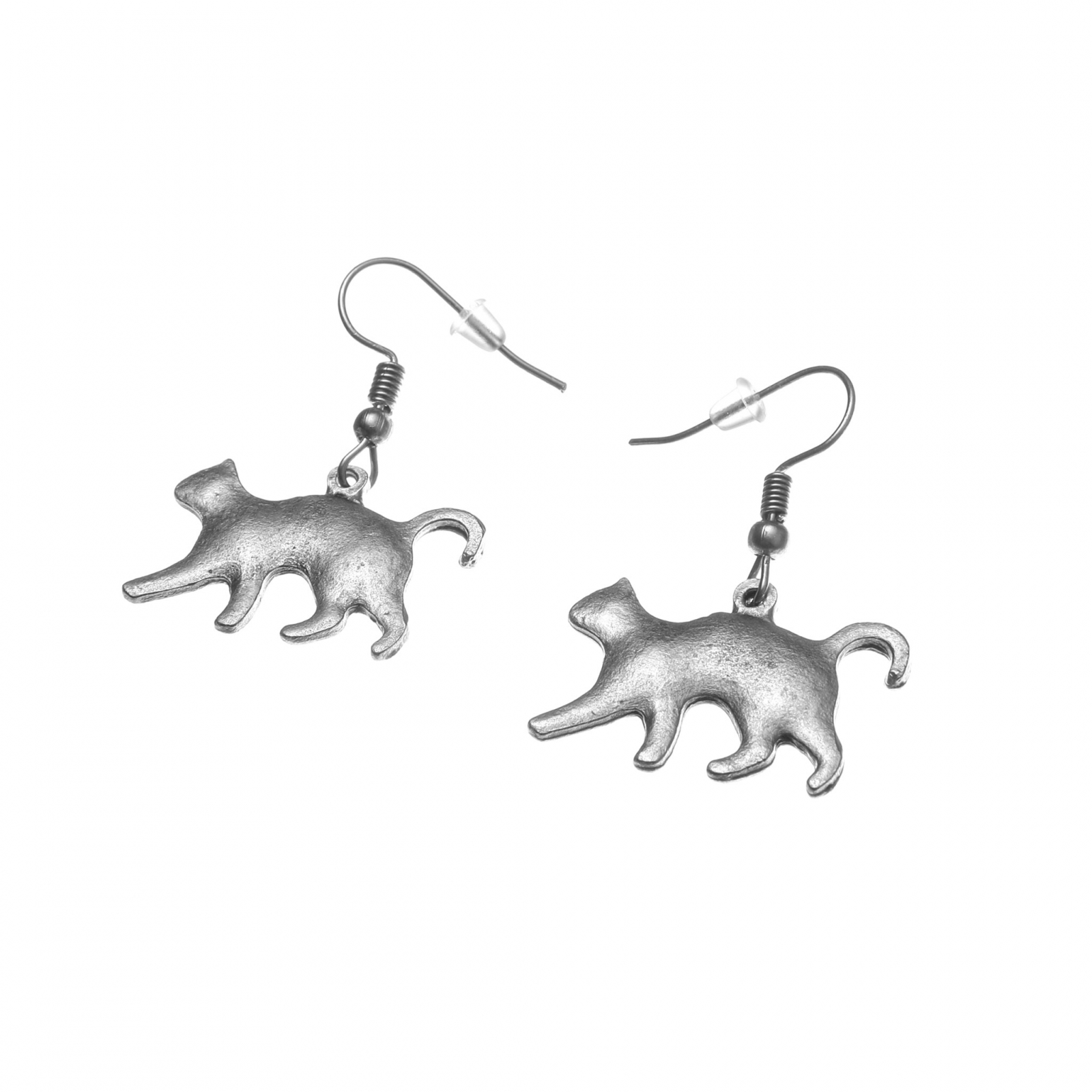 Cerceii din zamac în formă de pisică în mișcare sunt bijuterii adorabile și pline de viață. Cu un design jucăuș, reprezentând contururile zvelte ale unei pisici care se plimbă, acești cercei adaugă un element de grație și jucausitate oricărei ținute.