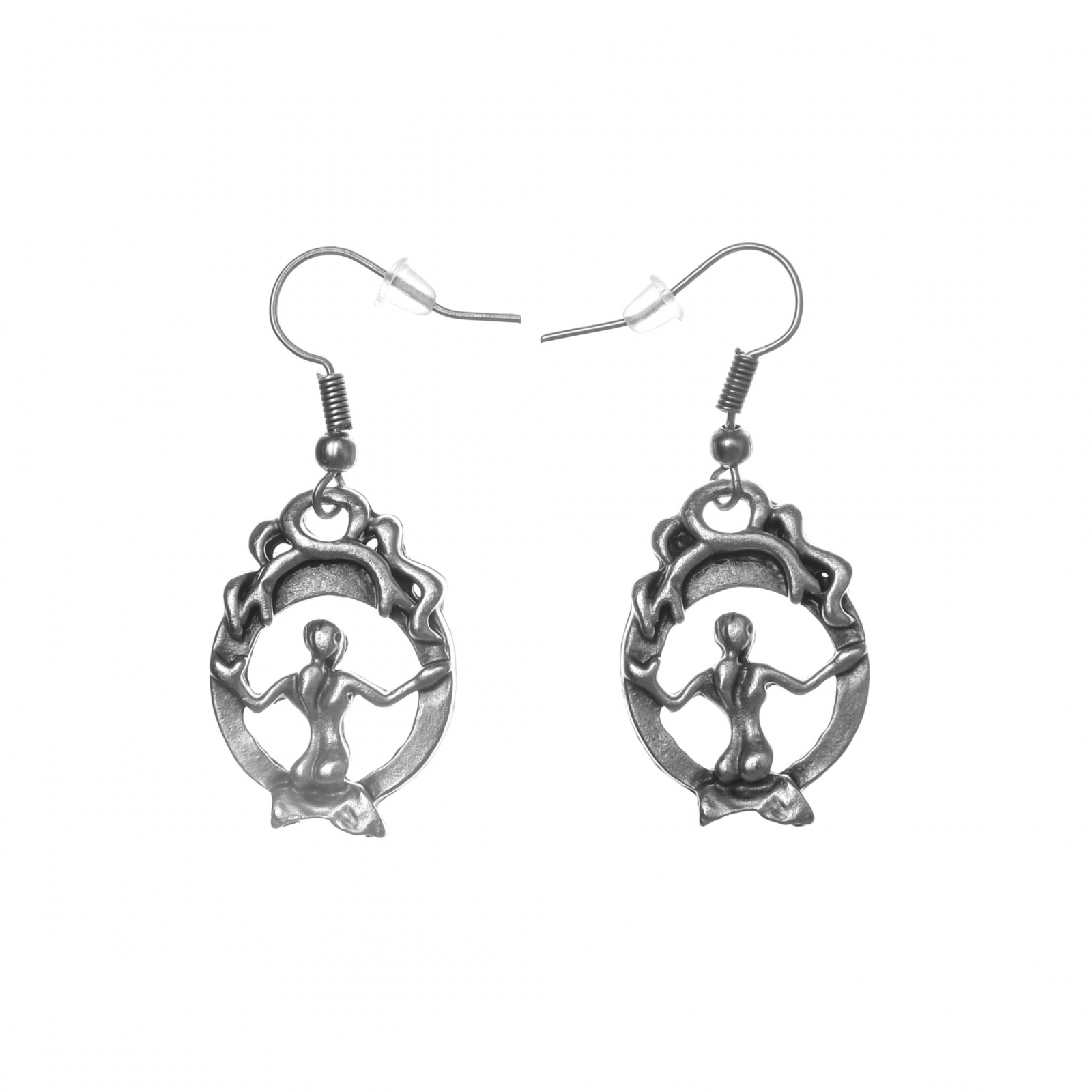 Cerceii din zamac în formă de arcadă cu o femeie sunt bijuterii elegante și pline de grație. Cu un design rafinat și detaliat, reprezentând o arcadă înconjurată de contururile unei femei, acești cercei adaugă un element de frumusețe și subtilitate oricărei ținute.