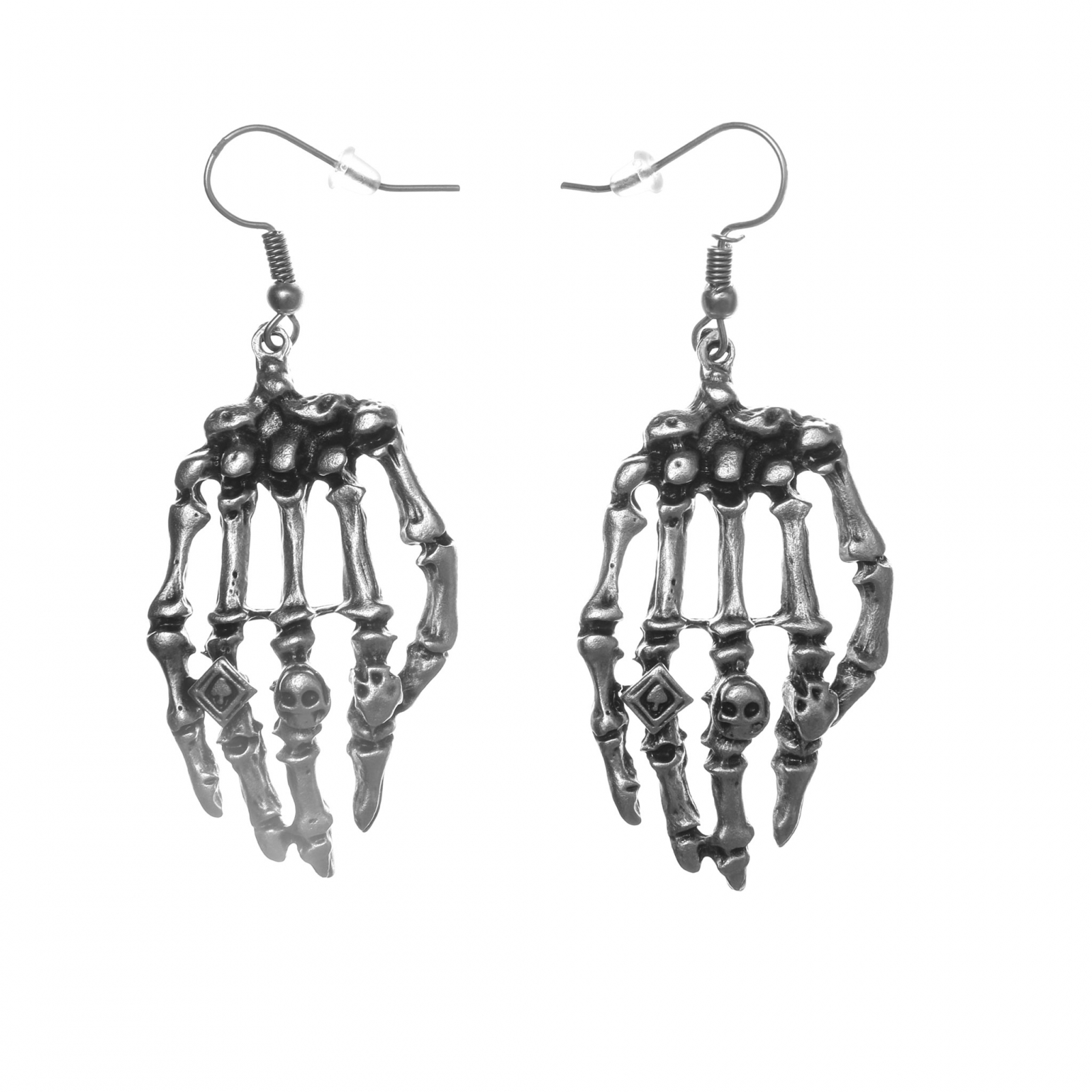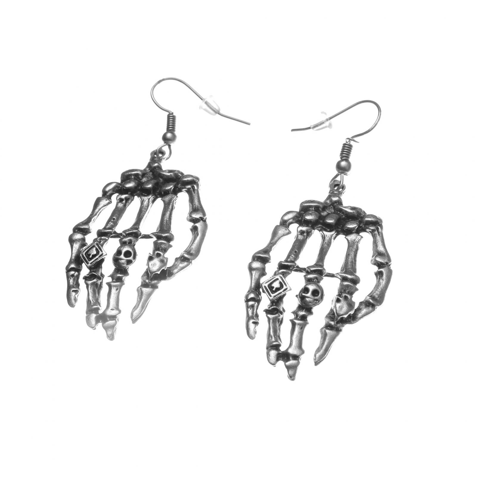 Cerceii din zamac în formă de schelet al unei mâini sunt bijuterii îndrăznețe și pline de caracter. Cu un design detaliat și realist, reprezentând contururile scheletului unei mâini, acești cercei adaugă un element de mister și originalitate oricărei ținute.