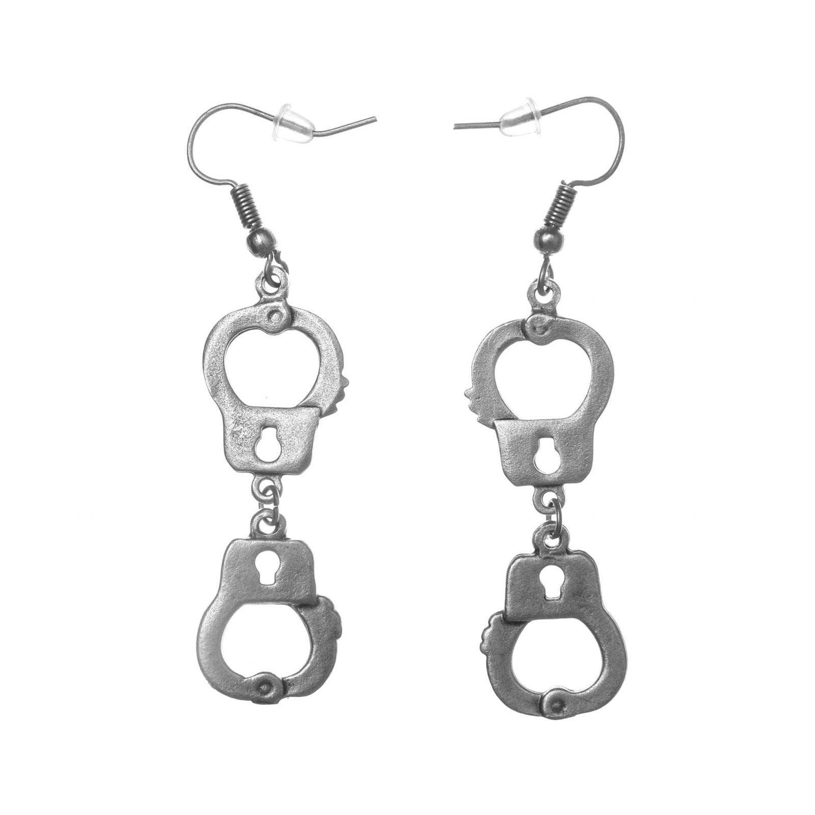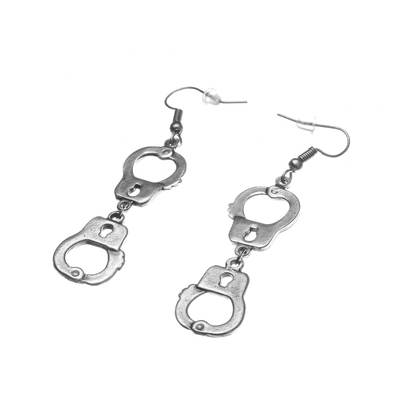 Cerceii din zamac în formă de cătușe sunt accesorii în stilul BDSM care emană putere și seducție. Cu un design distinctiv, reprezentând contururile cătușelor, acești cercei adaugă un element de mister și provocare oricărei ținute.