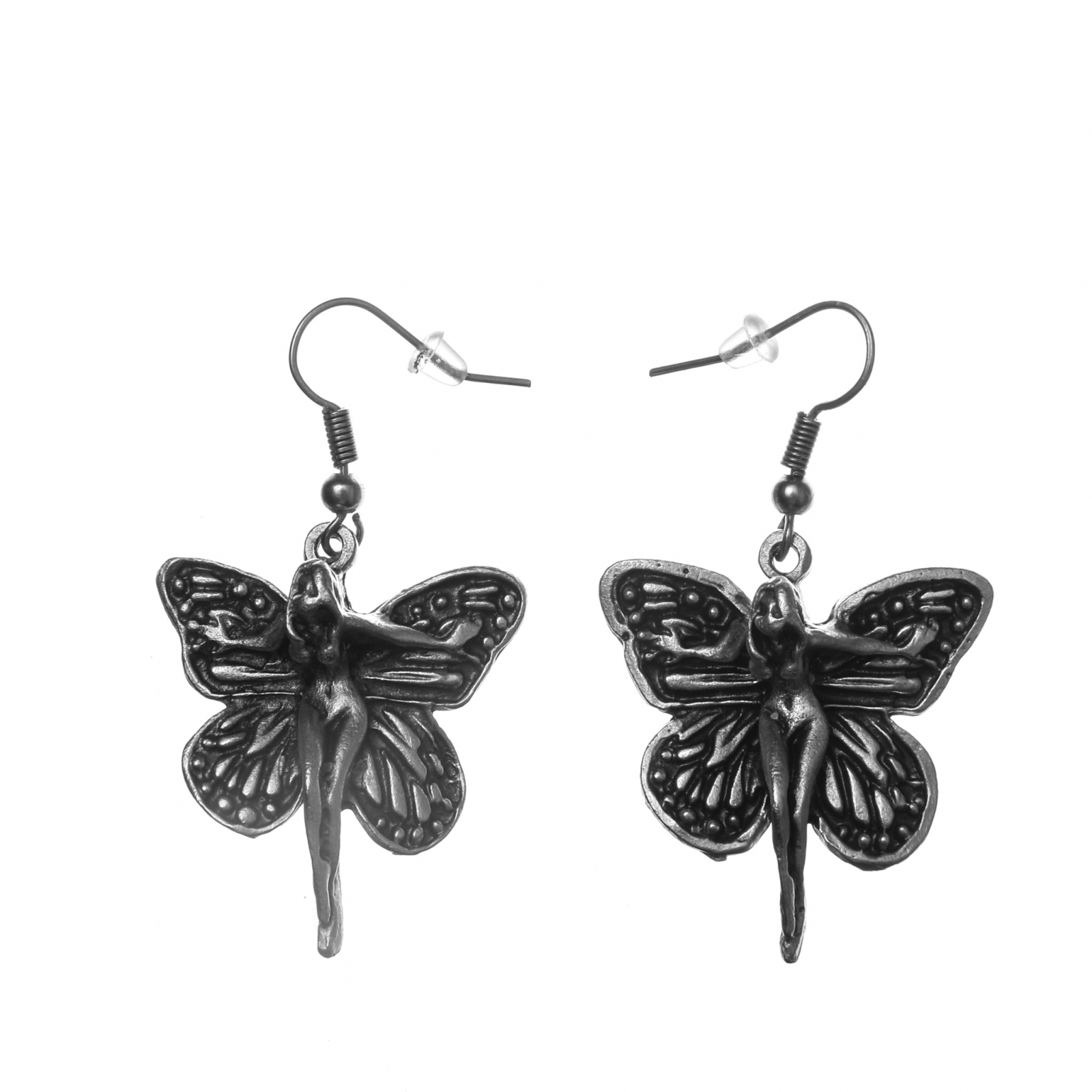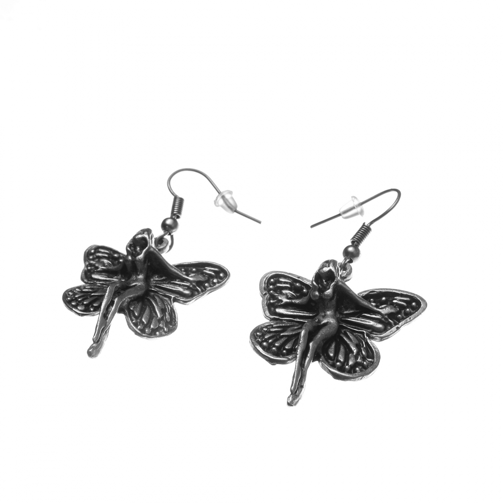 Cerceii din zamac în formă de zână cu aripi de fluture sunt bijuterii fermecătoare și pline de eleganță, care îmbină grăția unei zâne cu delicatețea aripilor de fluture. Cu designul lor subtil, reprezentând silueta unei zâne în zbor, împodobită cu aripi de fluture, acești cercei adaugă o notă de magie și visare oricărei ținute.