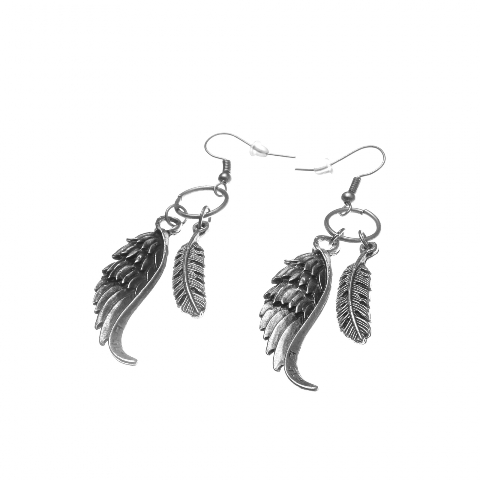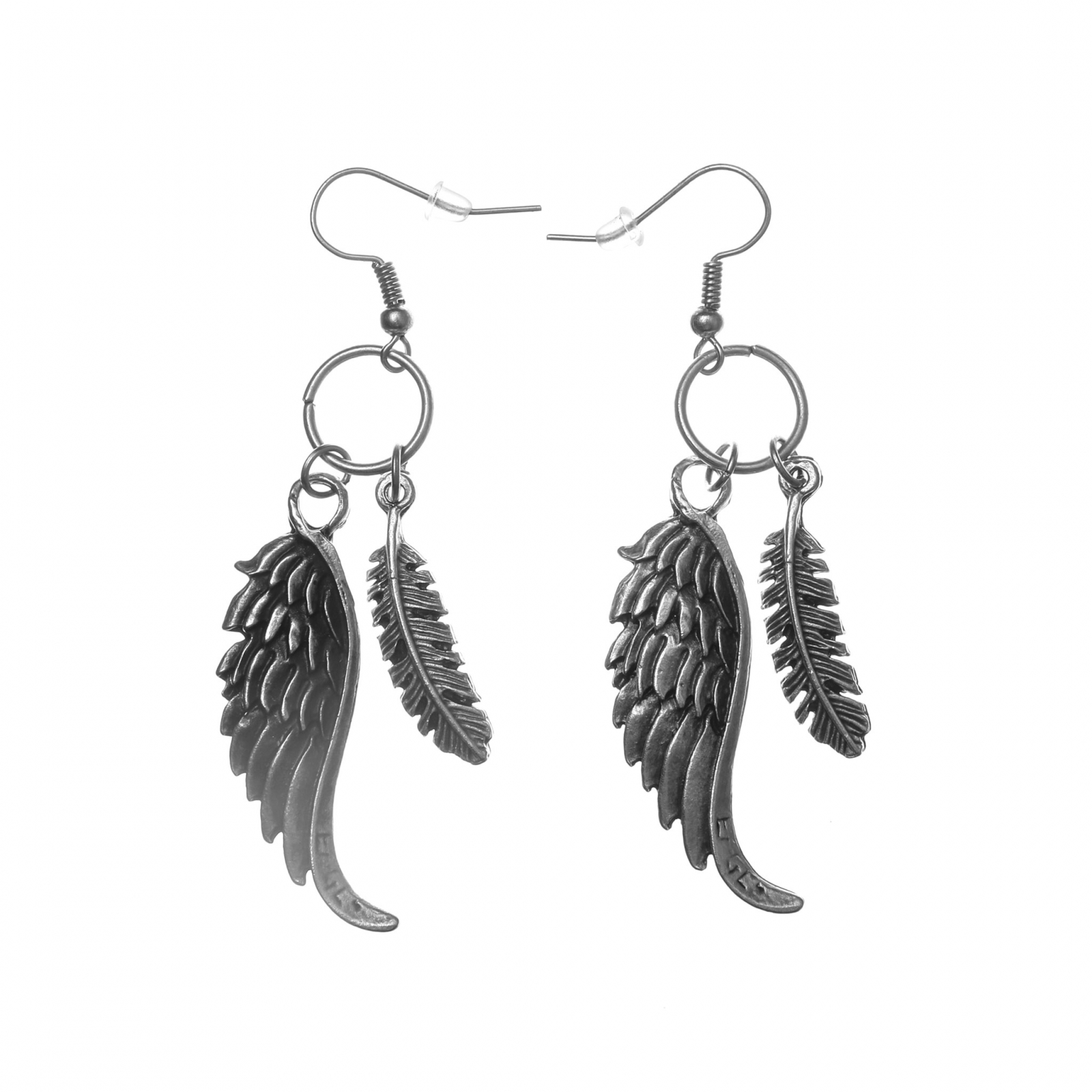 Cerceii din zamac în formă de aripă cu o pană sunt bijuterii care inspiră libertate și eleganță delicată. Cu designul lor subtil, reprezentând contururile unei aripi încadrate de o pană, acești cercei adaugă un strop de grație și farmec oricărei ținute.