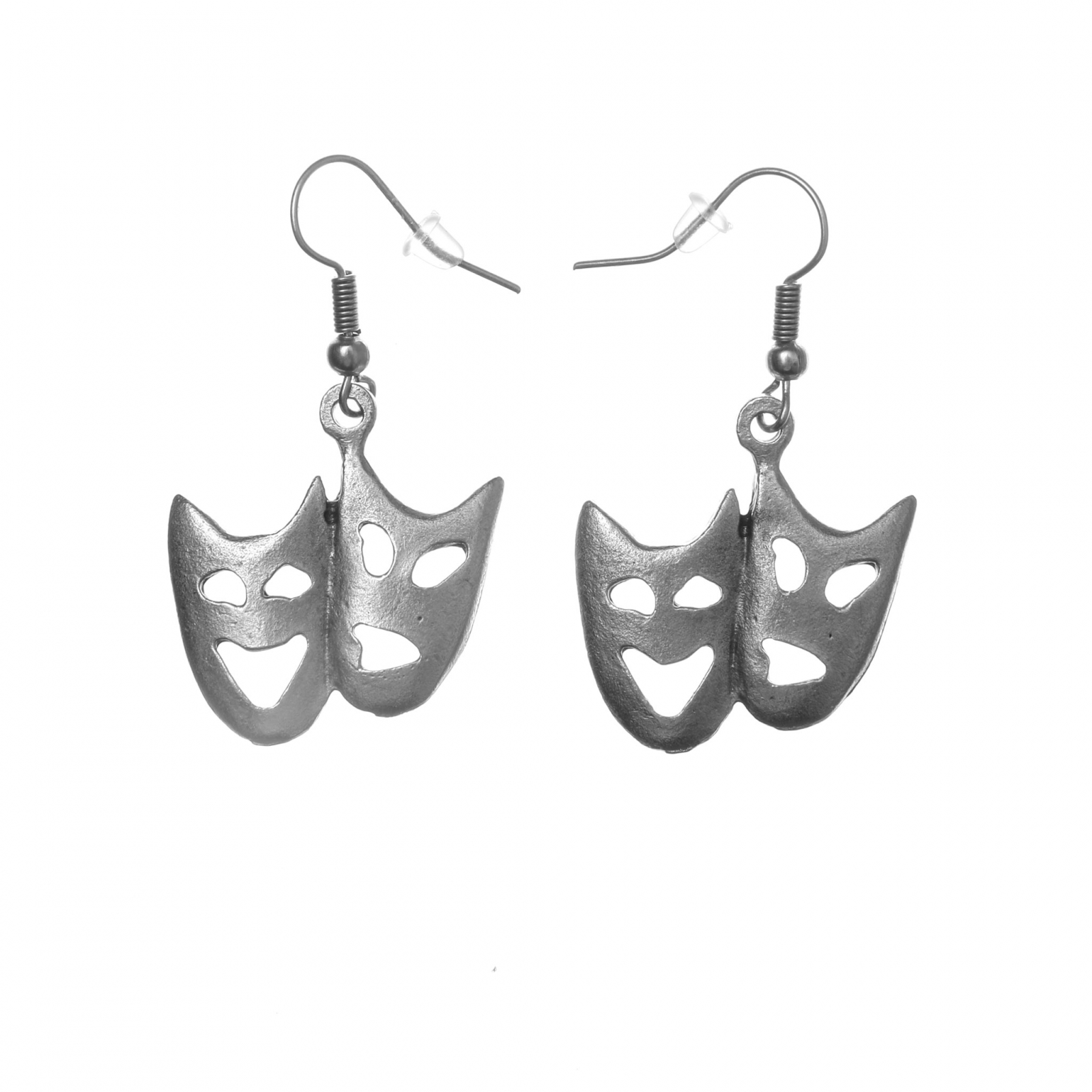 Cerceii din zamac în formă de măști de teatru sunt bijuterii care emană un aer de mister și dramatism. Cu designul lor distinctiv, reprezentând contururile măștilor tradiționale de teatru, acești cercei adaugă un strop de originalitate și eleganță oricărei ținute.