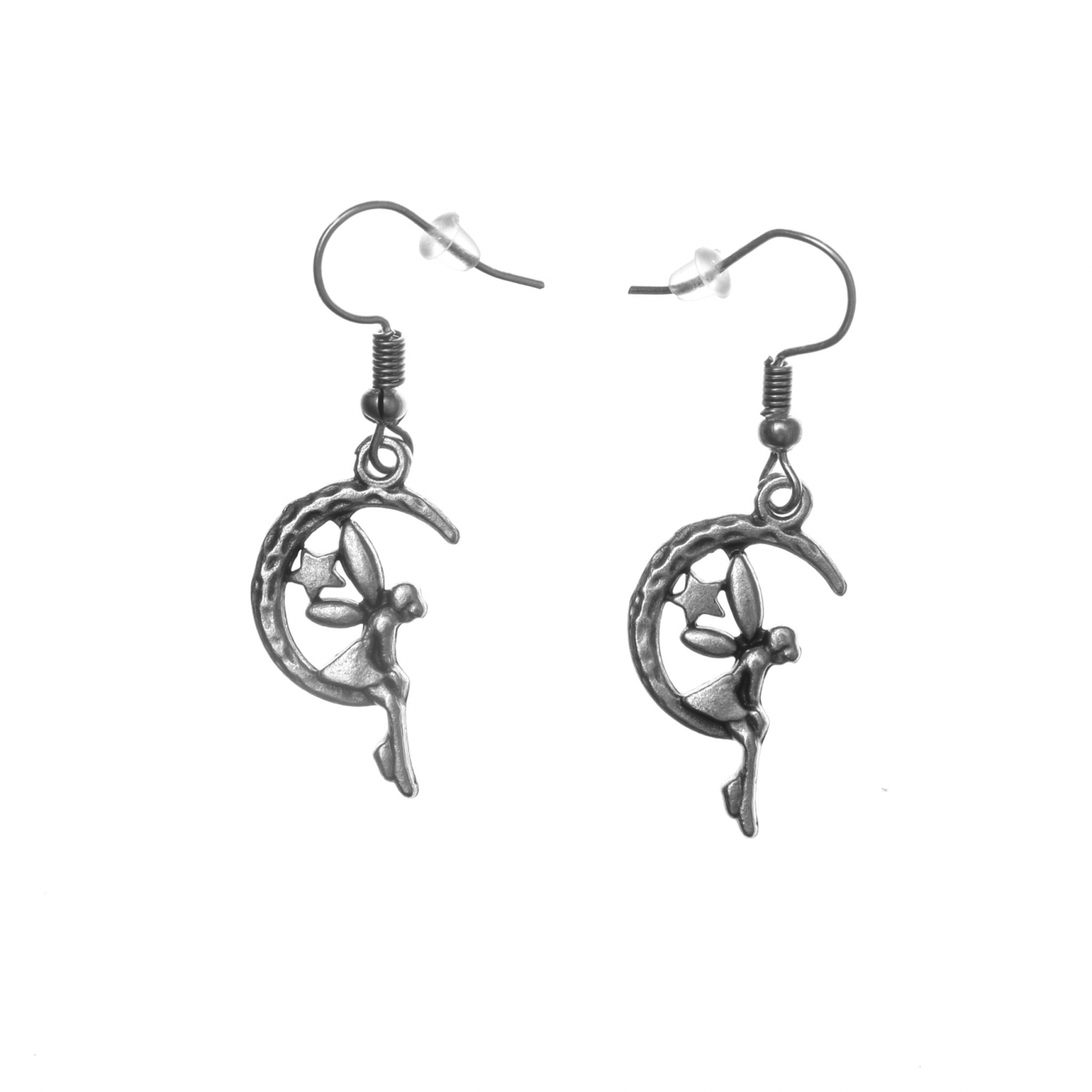 Cerceii din zamac în formă de lună cu o zână mică sunt bijuterii fermecătoare și pline de magie. Cu designul lor delicat, reprezentând contururile lunii și a unei zâne mici, acești cercei adaugă un strop de eleganță și fantezie oricărei ținute.