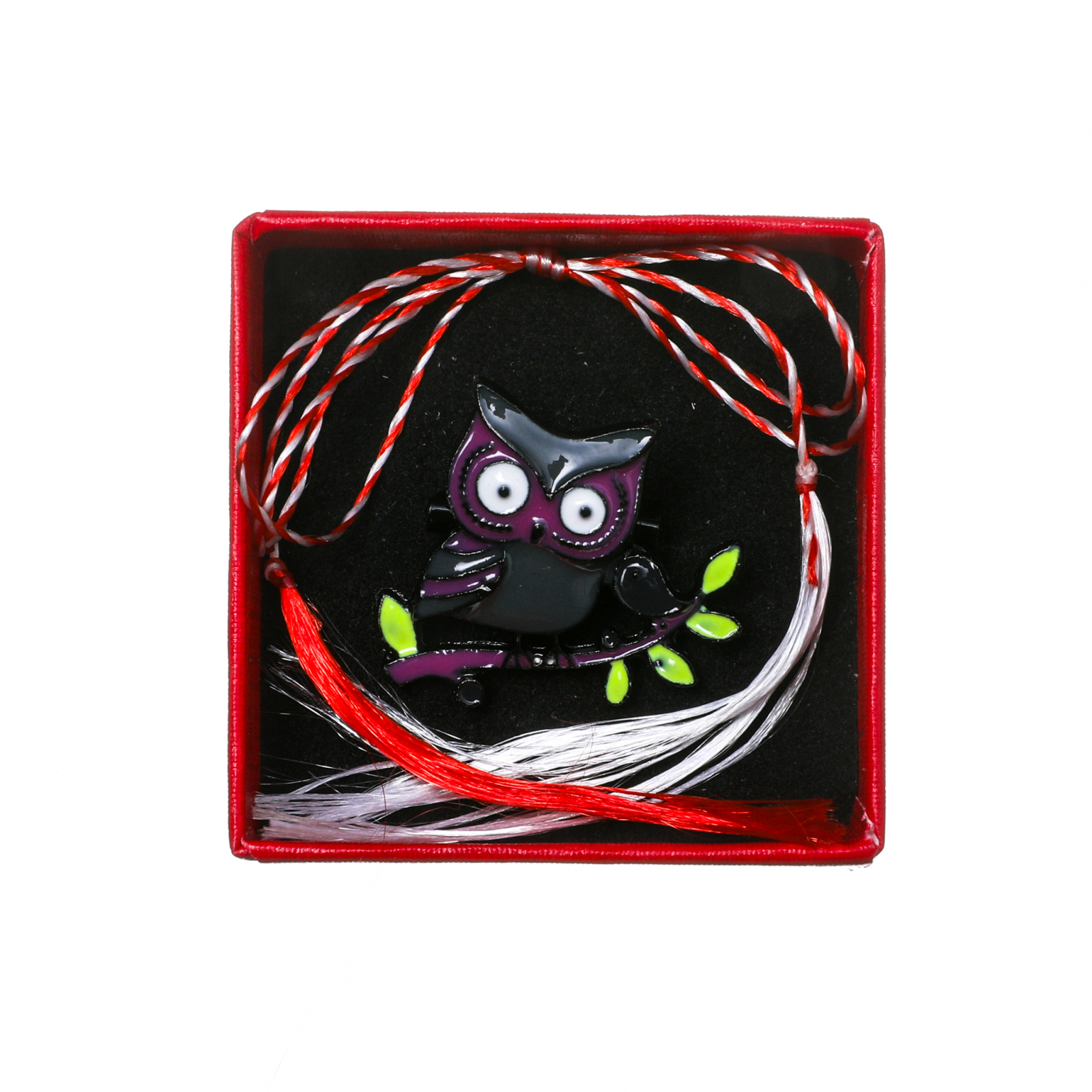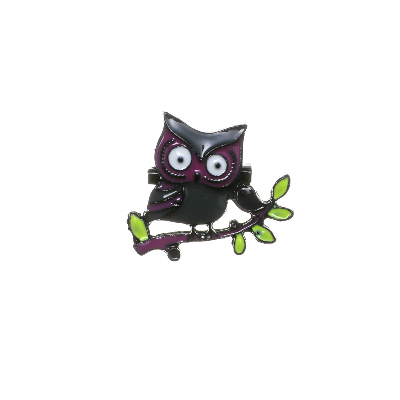 Brosa mica eleganta cu bufnita gri cu mov inchis