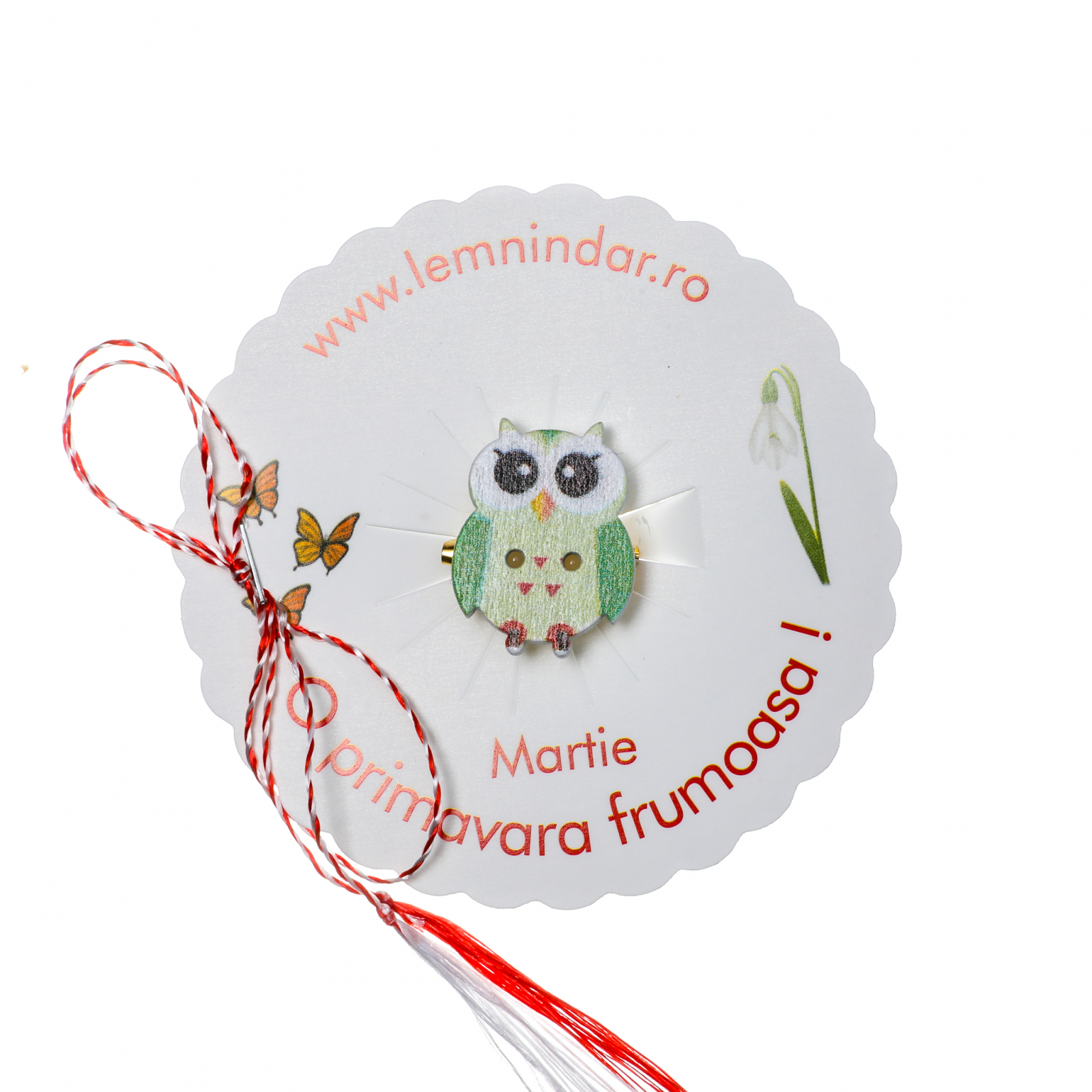 Martisor-brosa cu o bufnita simpatica cu nuante de verde